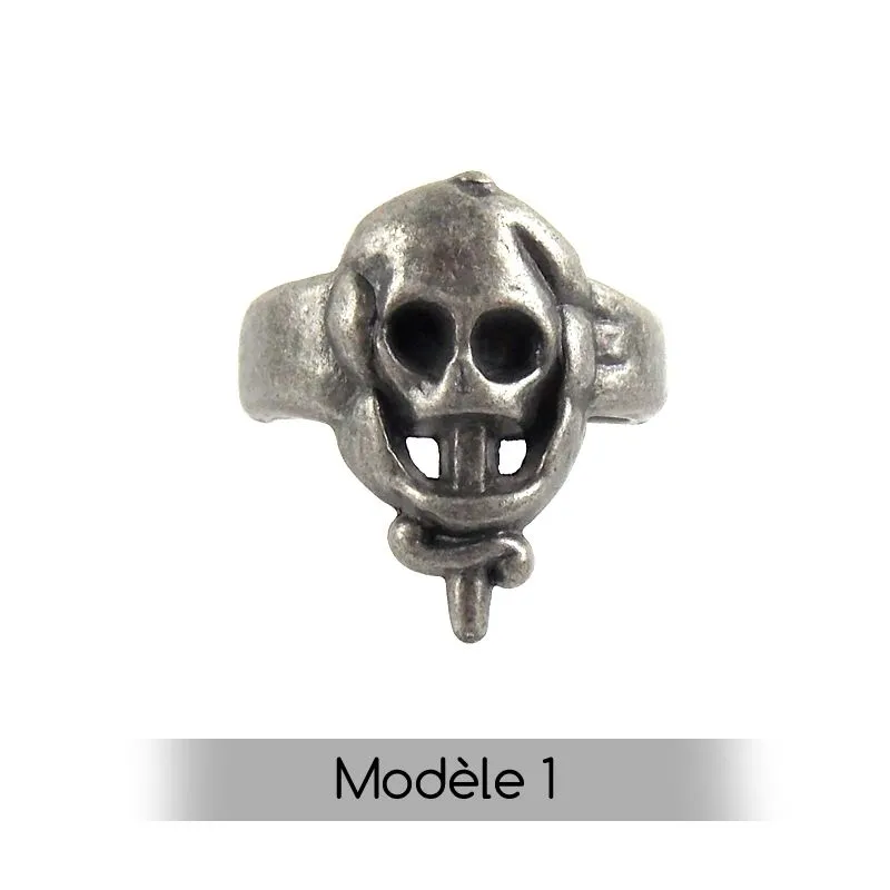 Accessoire de déguisement, bague en métal avec tête de mort, taille unique (ajustable).