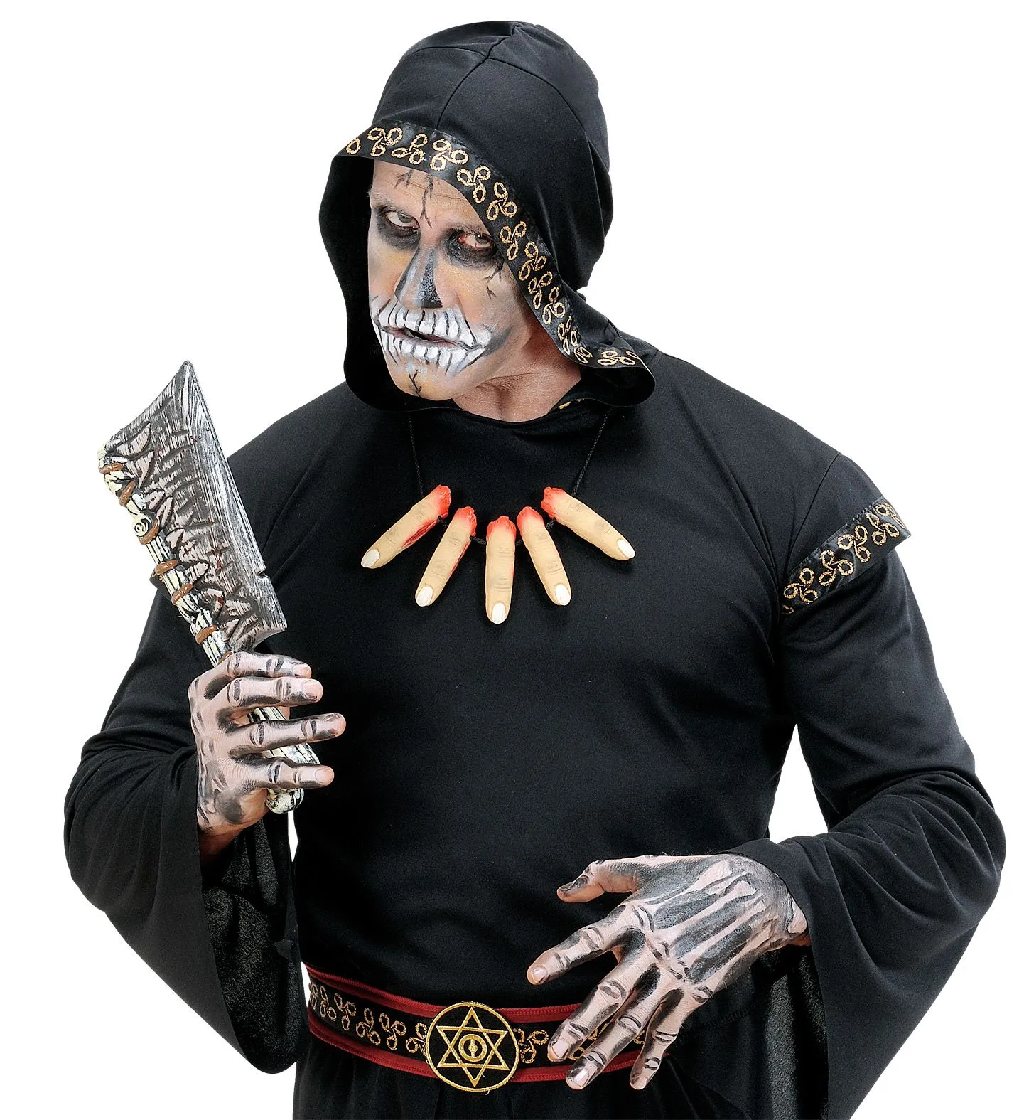 Accessoire de Déguisement collier 5 doigts coupés, il saura accompagner et mettre en valeur vos déguisements de Squelette ou de Sorcière.