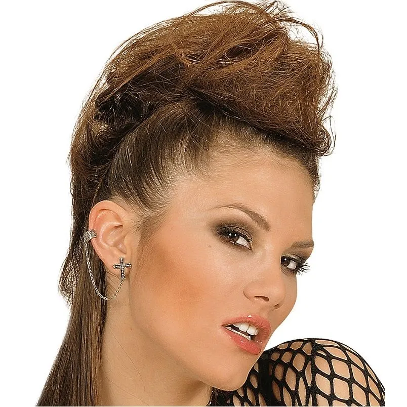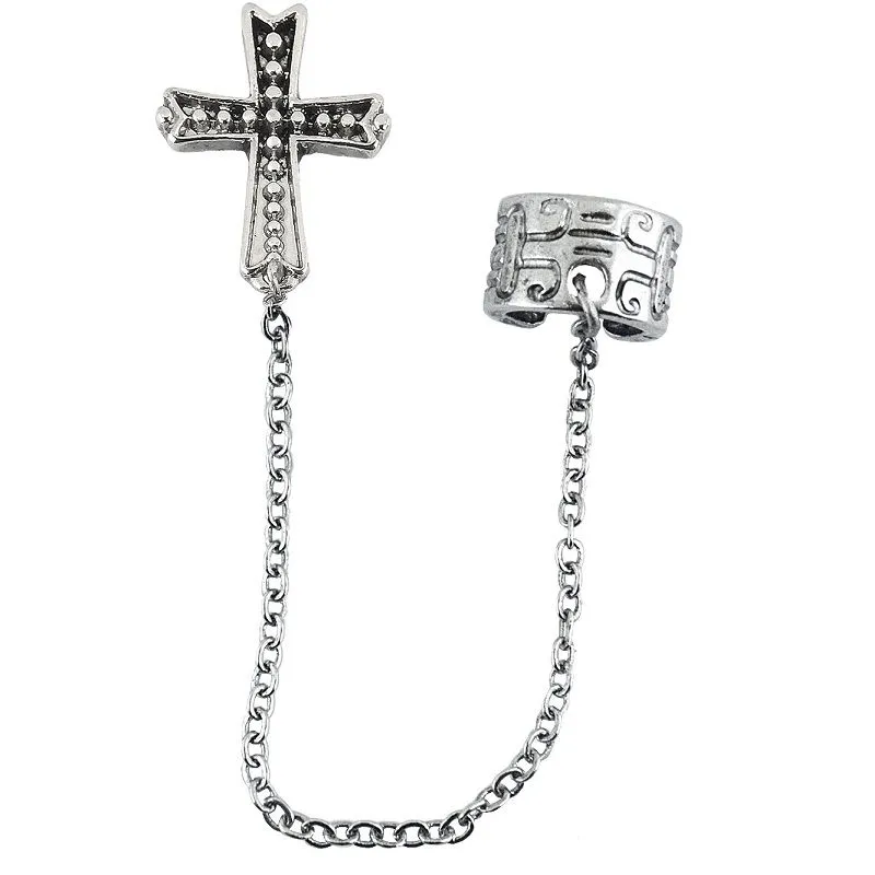 Vous allez tomber sous le charme de cette boucle d’oreille double, avec sur le lobe une croix qui remonte avec une chaĂ®nette sur le haut de l’oreille pour un effet total gothique.