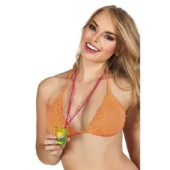 Pour une summer party, distribuez Ă vos invitĂ©s ces jolis colliers de perles avec un petit verre en plastique suspendu. Il fait chaud sous les tropiques! Il ne faut pas se dĂ©saltĂ©rer, alors ces colliers vous permettront d’avoir toujours votre verre Ă portĂ© de main !