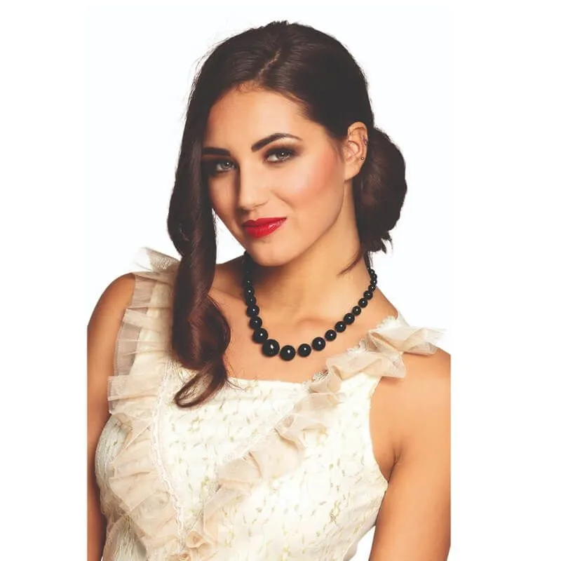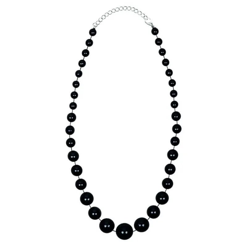 Changez un peu du classique collier de perles blanches et optez pour ce collier de perles noires. Pour adulte, cet accessoire sera idĂ©al pour un dĂ©guisement charleston et celui-ci a des petites perles Ă l’arrière et des grosses perles devant.