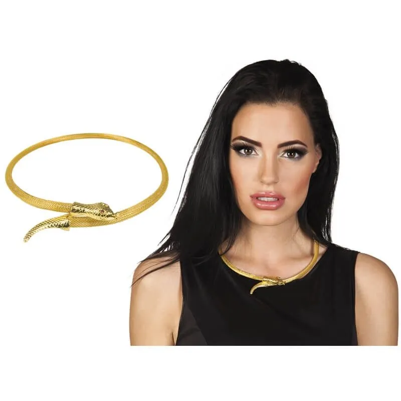 Incarnez une magnifique reine d’Egypte le temps d’une soirĂ©e dĂ©guisĂ©e entre amis et complĂ©tez votre costume de ce superbe collier dorĂ© en forme de serpent. Il sera sublime et indispensable Ă votre cou pour pouvoir reigner de toute votre puissance pendant une fĂŞte sur le thème “Egypte“