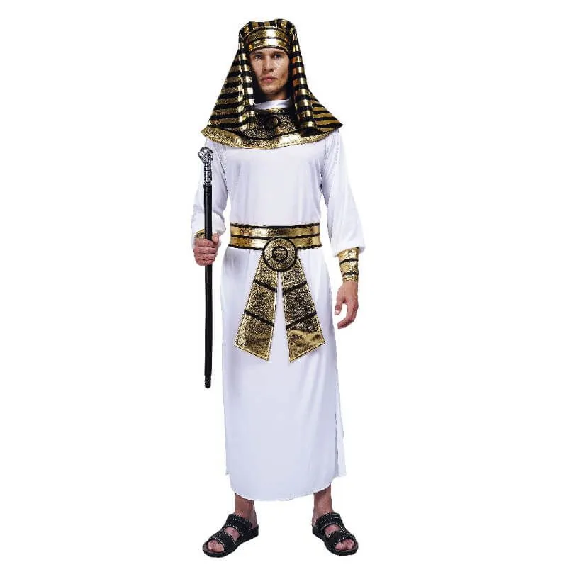 Optez pour ce dĂ©guisement pas cher afin d’incarner un égyptien le temps de votre soirĂ©e dĂ©guisĂ©e ou d’une fĂŞte sur le thème de l’Egypte. Ce costume à  petit prix pour adulte sera parfait avec sa longue robe blanche avec ses manches longues et au bout des bracelets dorĂ©s et noirs.
