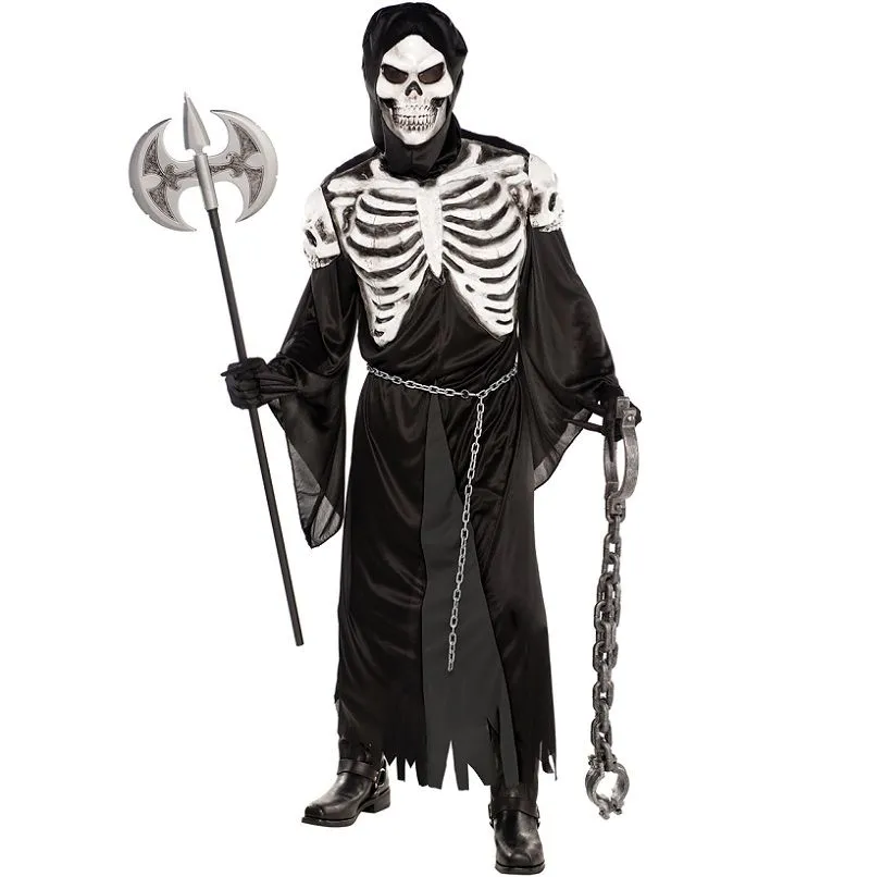 – Demi-masque en plastique “TĂŞte de mort”. S’attache par Ă©lastique sur l’arrière du crâne.