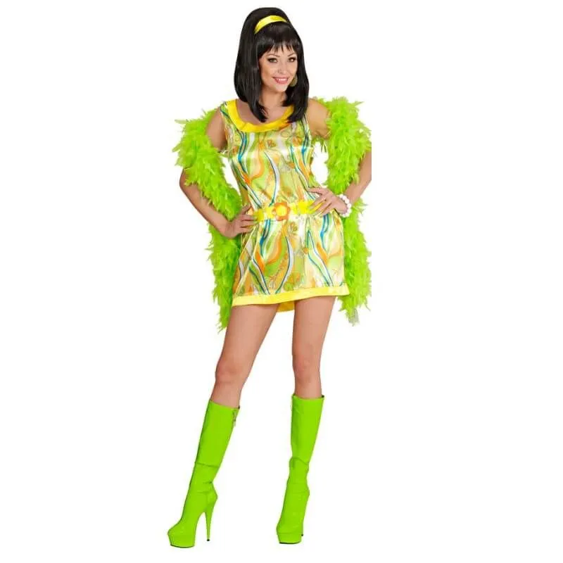 Avec cette robe des années 70 aux motifs psychédéliques et floraux, vous allez taper dans l’oeil de vos invités ! Les couleurs flashy s’associeront parfaitement avec une décoration sur les années disco !