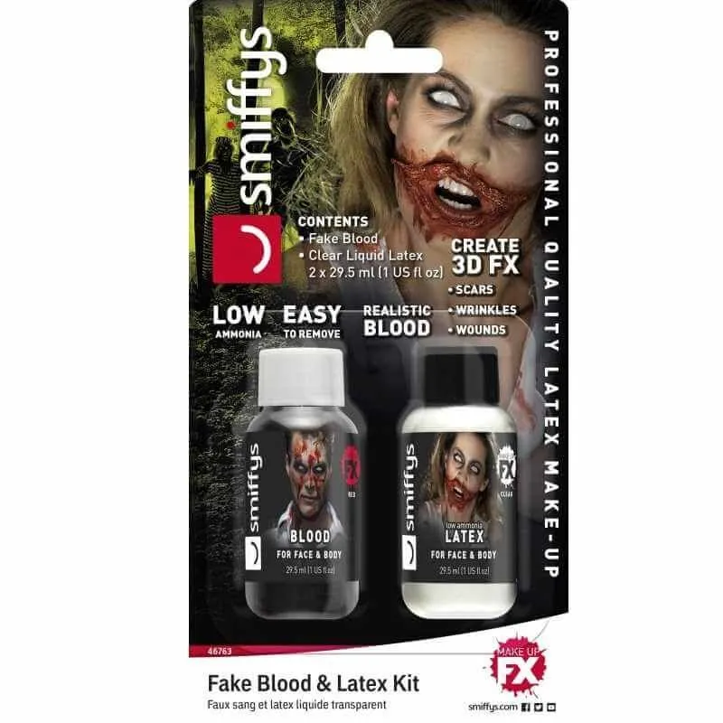 Avec ce kit vous faĂ®tes coup double : le latex et le faux sang rĂ©uni ! Vous allez pouvoir exprimer tous vos talents d’artistes avec ce set de maquillage. Parfait pour Halloween mais pour toutes vos soirĂ©es dĂ©guisĂ©es Ă©galement.