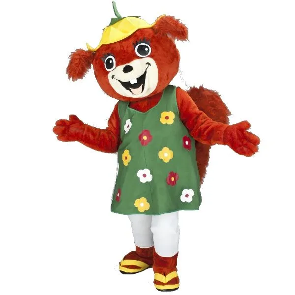 Déguisement mascotte en peluche composé du corps en peluche avec robe fleurie et pantalon, des mains, des pattes avec tongs jaunes. Ventre rembourré pour un effet encore plus sympathique !