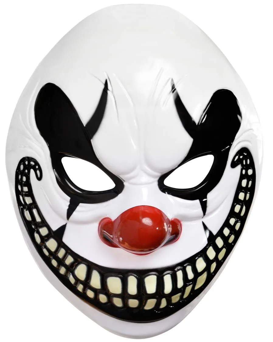 Un maquillage tout fait et un large sourire sadique et flippant, ce masque de clown en plastique va faire son petit effet pour Halloween !