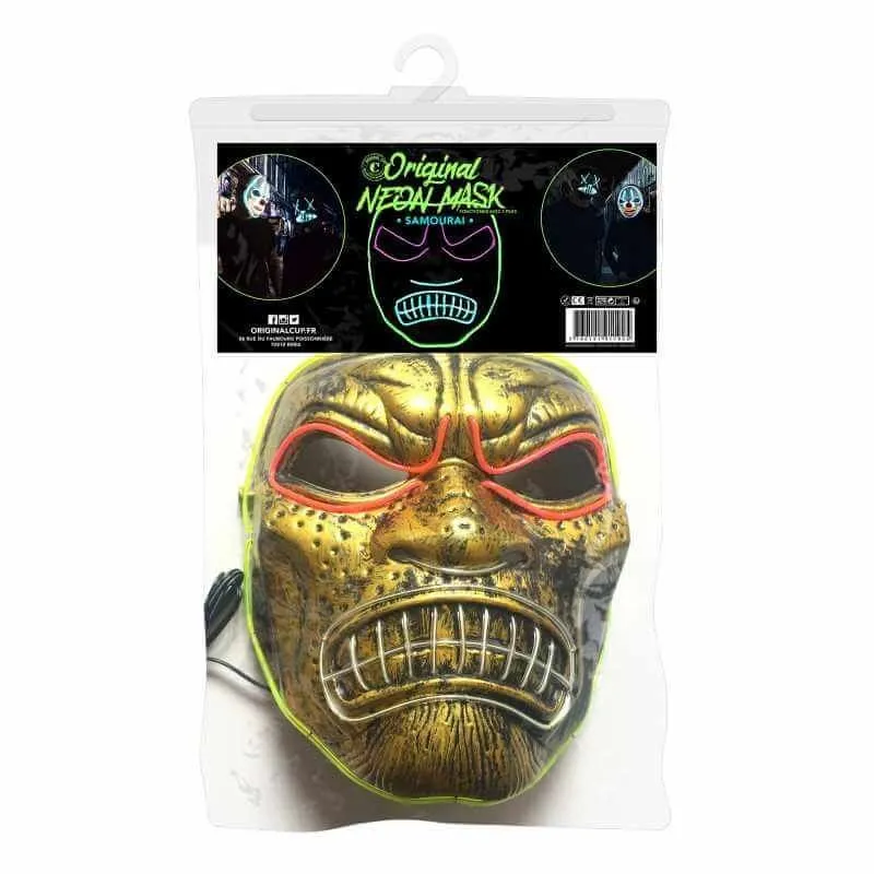 Cette année, vous avez décidé de changer du costume classique de zombie, tueur en série, vampire, diable… Optez pour ce masque de samouraï avec des néons ! Ils soulignent le côté “méchant” du samouraï et franchement c’est pas du tout rassurant… Vous aurez l’air d’être en colère et d’en vouloir à tout le monde ! Ajoutez une arme très inquiétante et vous serez parfait pour Halloween.
