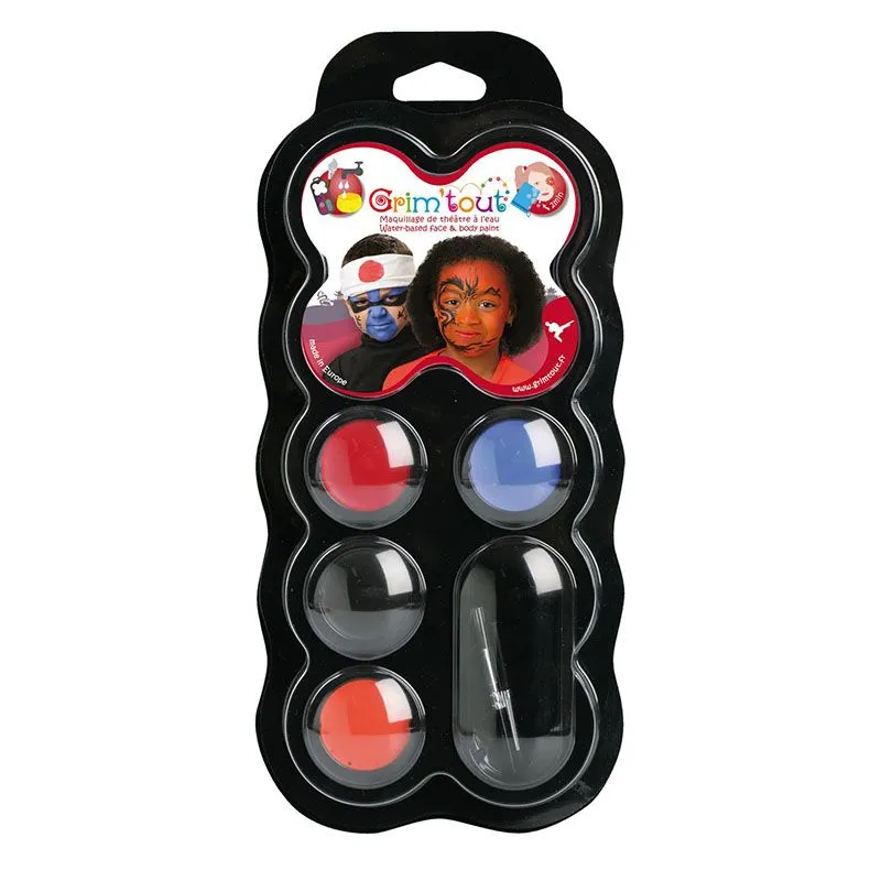 Cette palette de maquillage Grim’tout est idĂ©ale pour le costume d’elfe ou de princesse de votre enfant. Tout est possible grâce Ă ses 4 teintes : rouge foncĂ©, bleu, noir et rouge vif. Le maquillage est doux pour la peau des plus jeunes par sa texture crĂ©meuse Ă base d’eau et le dĂ©maquillage Ă l’eau est rapide et simple pour les parents !Â