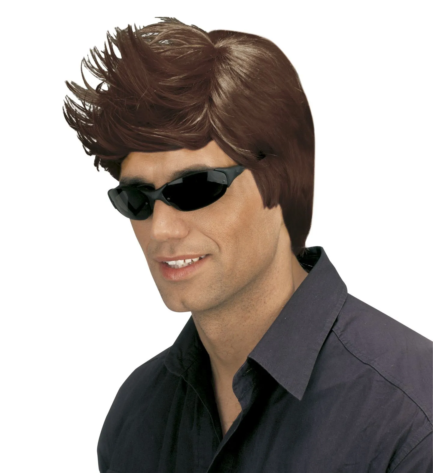 Cette perruque brune cheveux court, hirsute sur le dessus est top tendance, pour interpréter vos stars préférés ou adopter un look dans le vent.