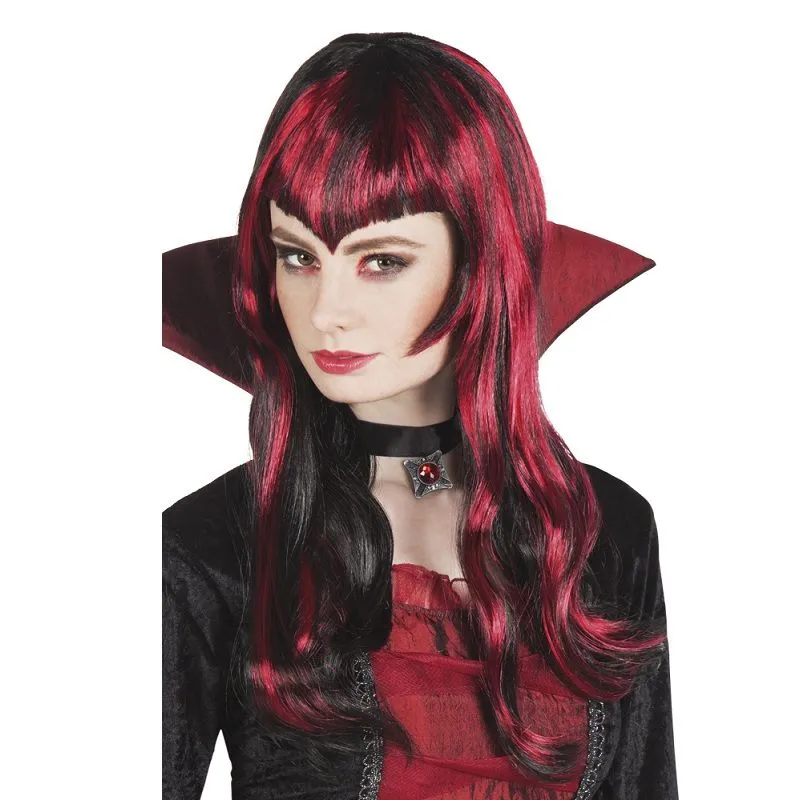 Cette perruque aux longs cheveux bruns mĂ©chĂ©s d’un rouge Ă©carlate vous permettra de complĂ©ter vos tenues les plus terrifiantes et vos dĂ©guisements de vampire d’Halloween!