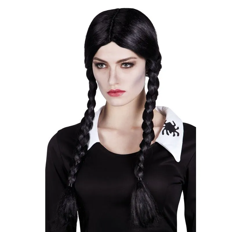 Lors d’une fĂŞte d’Halloween, effrayez vos amis avec cette perruque gothique noire Ă nattes. Assortissez cette dernière avec un costume sombre !