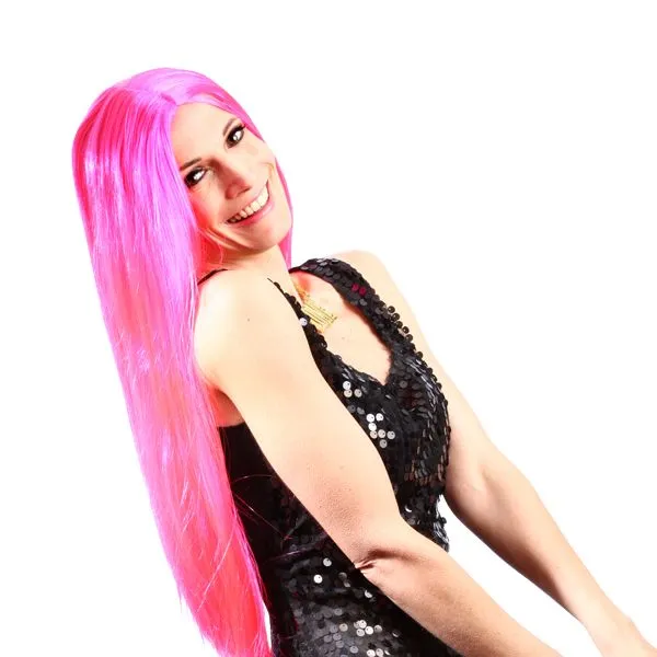 Perruque Rose Fluo en cheveux synthĂ©tiques, taille unique, s’adapte Ă toutes les tĂŞtes grâce Ă son filet Ă©lastique qui s’enfile comme un bonnet.