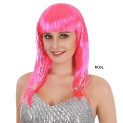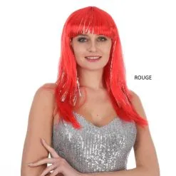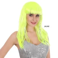 Vous allez adorer cette perruque pour femme cheveux mi-longs dance, couleur au choix, nĂ©on très tape Ă l’oeil avec une frange et des lames argentĂ©es pour un effet brillant.