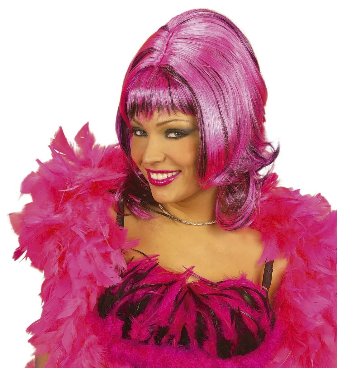 Perruque Sharona aux méches fluos sur une base brune donne de la couleur à votre déguisement.