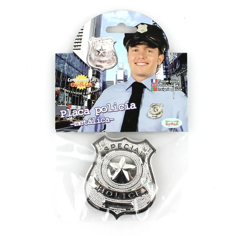 Plaque de police en métal très réaliste, se fixe facilement sur votre veste de policier grâce à son attache par épingle à nourrice