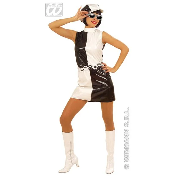 Robe et casquette en imitation cuir noir et blanc pour vous transformer en femme des années 70 et revivre la fureur du samedi soir !