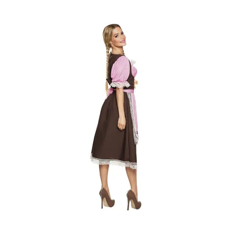 Incarnez la plus sĂ©duisante Ă l’occasion d’une soirĂ©e d’anniversaire dĂ©guisĂ©e, folklore, Oktoberfest (fĂŞte de la bière), le carnaval … avec ce costume de tyrolienne tout Ă fait traditionnel avec son gilet lacĂ© et sa longue jupe assortie avec dentelle, sans oublier le tablier Ă carreaux rose et blanc !
